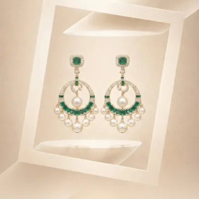 Designed to frame the face with luminous precision, these diamond danglers reflect the timeless elegance Shri Ram Hari Ram is known for. Meticulously crafted with a delicate balance of brilliance and structure, each piece moves with effortless grace, catching light from every angle.